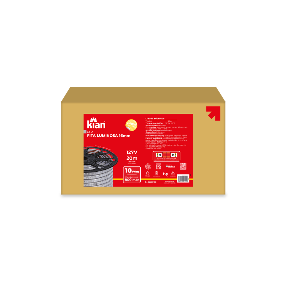 Fita Led 20 metros 6.000K Branca Fria IP65 2835 9W/m 127V Kian