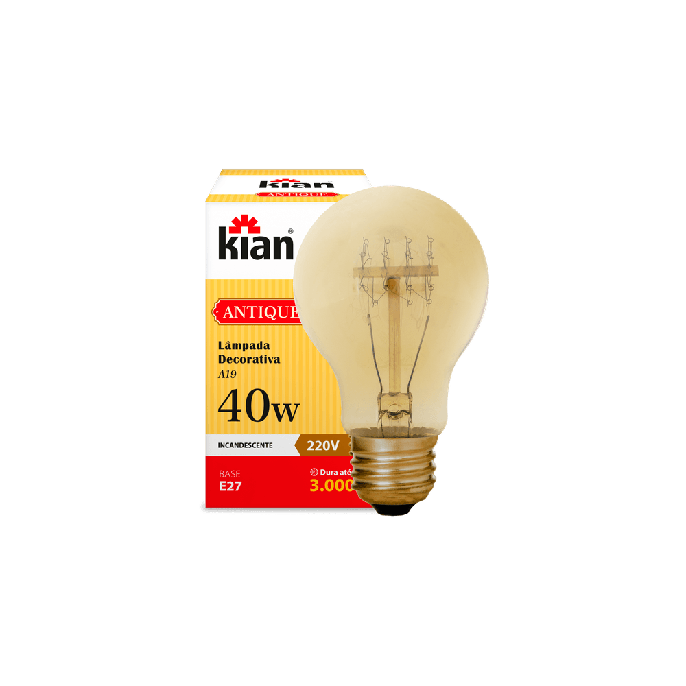 Lâmpada Antique Incadescente A19 40W 2.700K Branca Quente 127V Kian