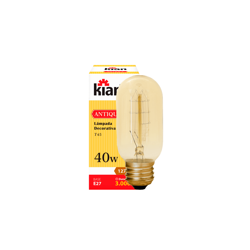 Lâmpada Antique Incadescente T45 40W 2.700K Branca Quente 127V Kian