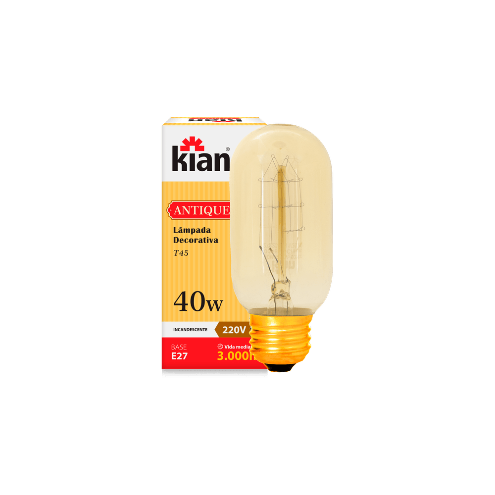 Lâmpada Antique Incadescente T45 40W 2.700K Branca Quente 127V Kian