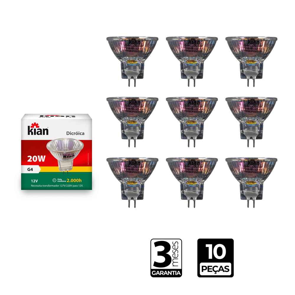 Lâmpada Halógena Cápsula Bulbo Claro G4 20W 12V Kian - CX/10