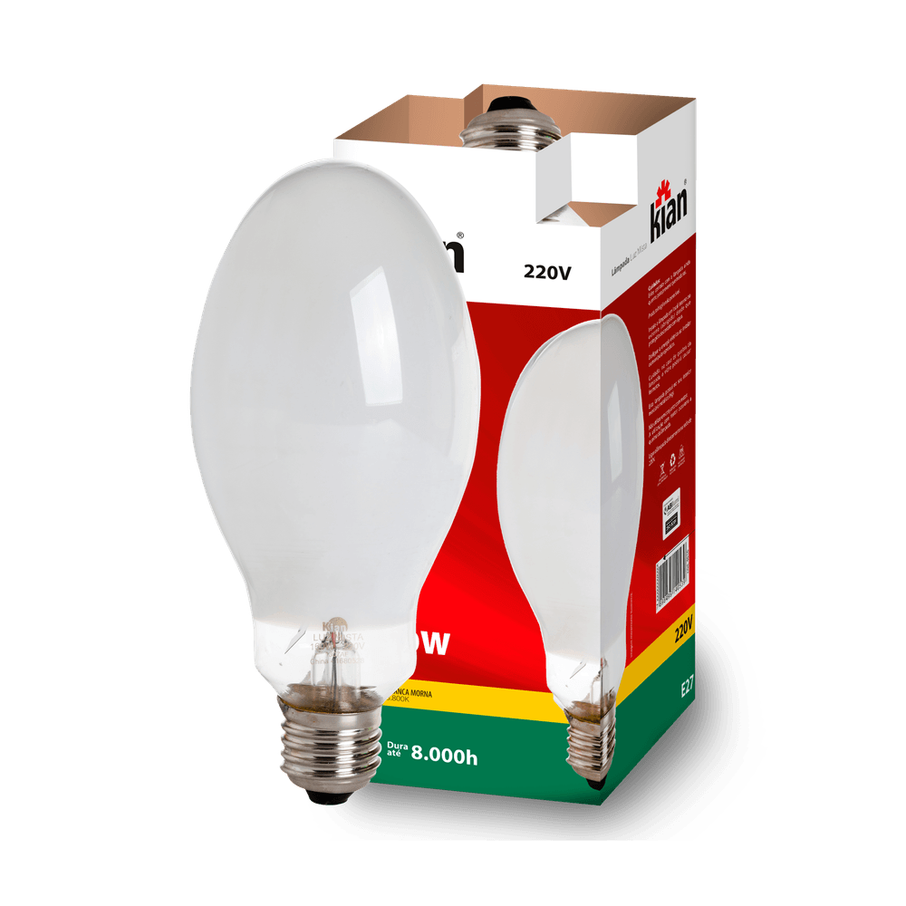 Lâmpada HID Vapor Metálico 100W 6.000K Branca Fria Base E27 Kian