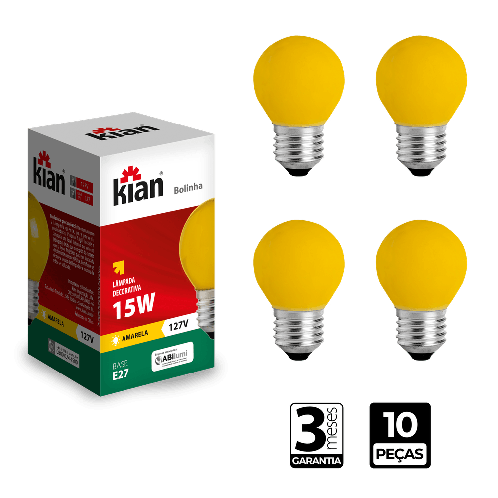 Lâmpada Incadescente Bolinha Amarela 15W Base E27 127V Kian - CX/10