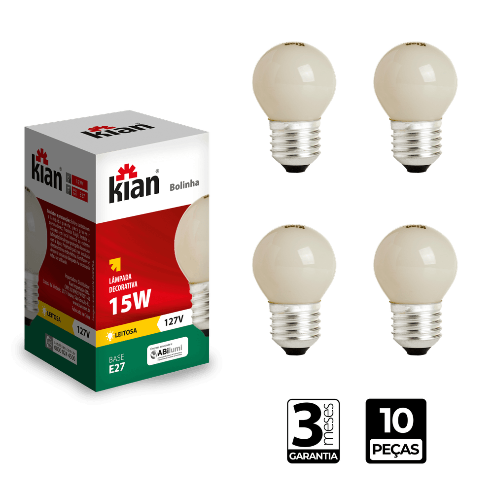 Lâmpada Incadescente Bolinha Leitosa 15W Base E27 127V Kian - CX/10