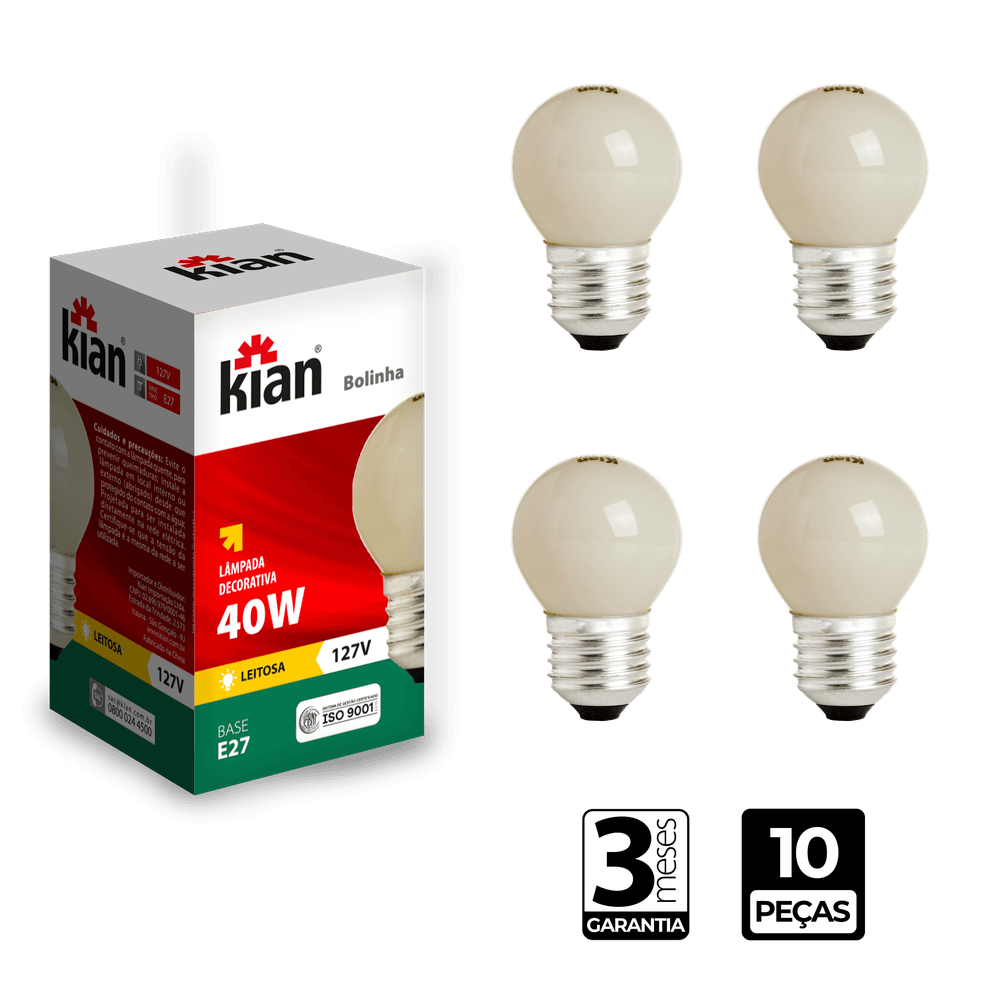 Lâmpada Incadescente Bolinha Leitosa 40W Base E27 127V Kian - CX/10