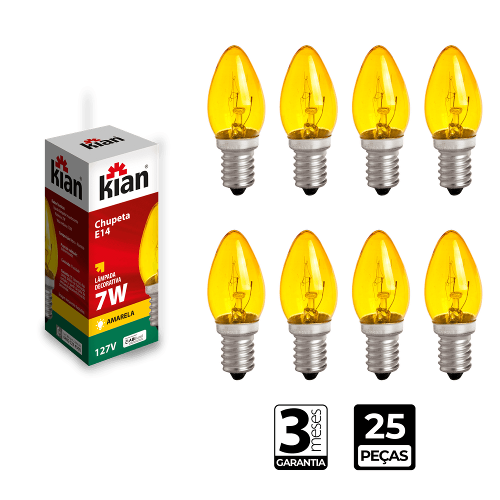 Lâmpada Incadescente Chupeta Amarela 7W Base E14 127V Kian - CX/25