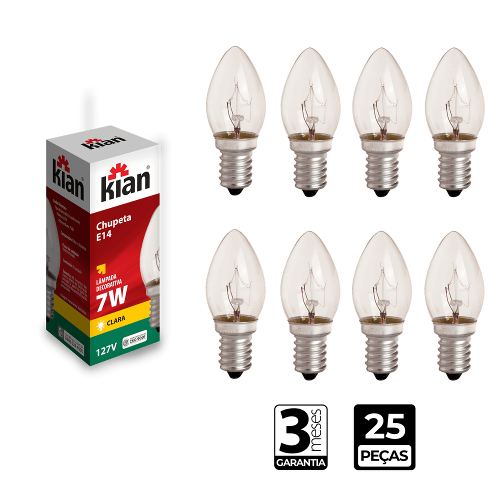 Lâmpada Incandescente Chupeta Clara 7W Base E14 127V Kian - CX/25