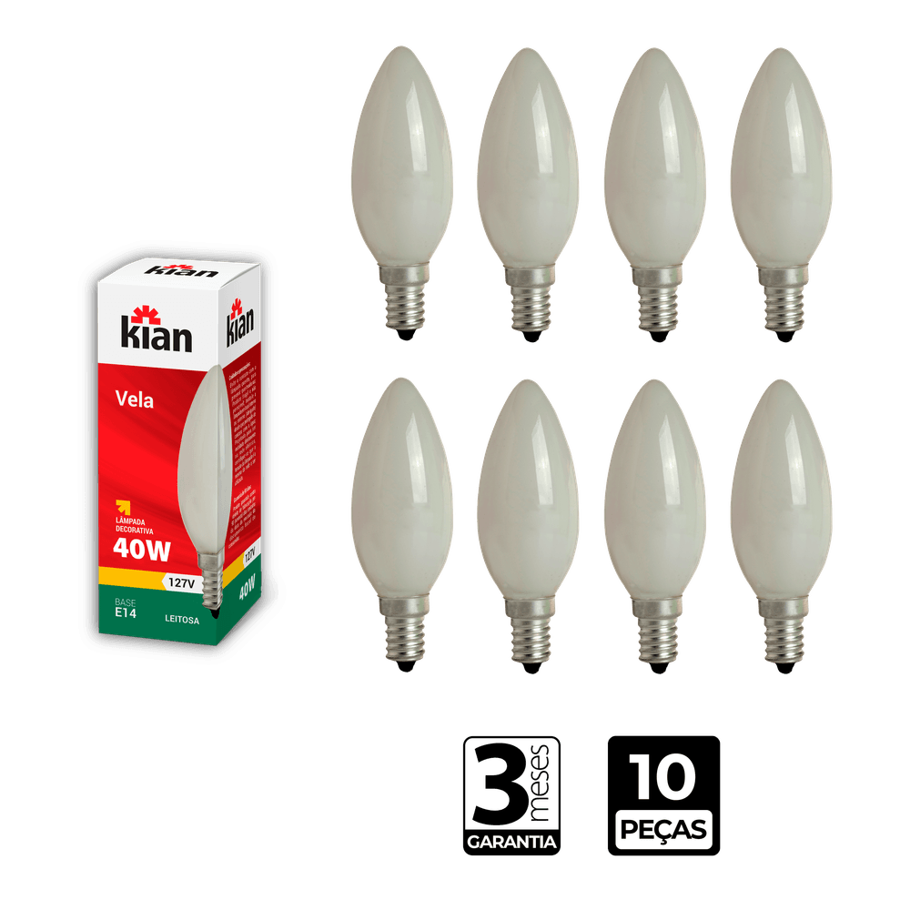 Lâmpada Incandescente Vela Leitosa 40W Base E27 127V Kian - CX/10