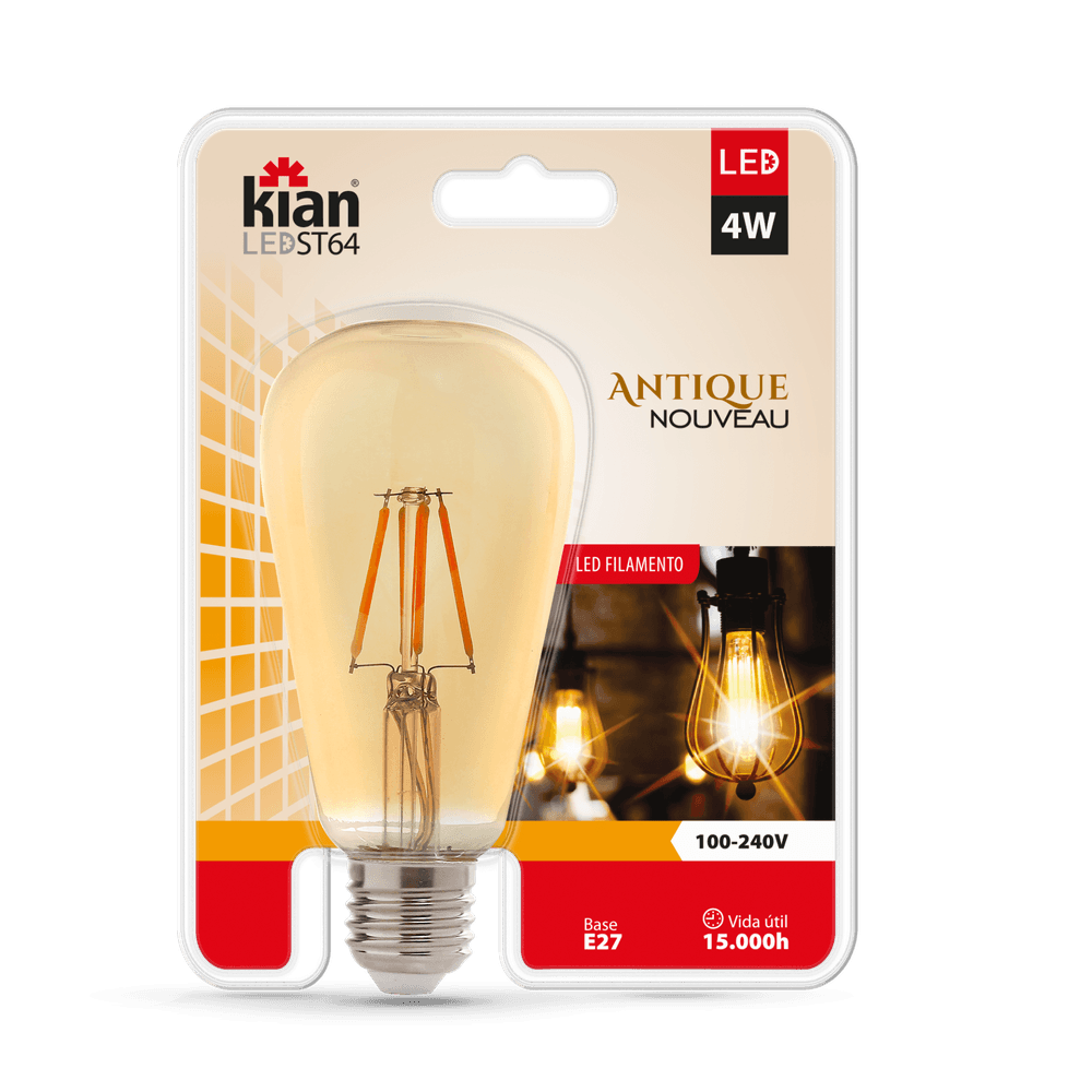 Lâmpada Led Antique Noveau St64 4W Base E27 2.200K Branca Quente Bivolt Kian