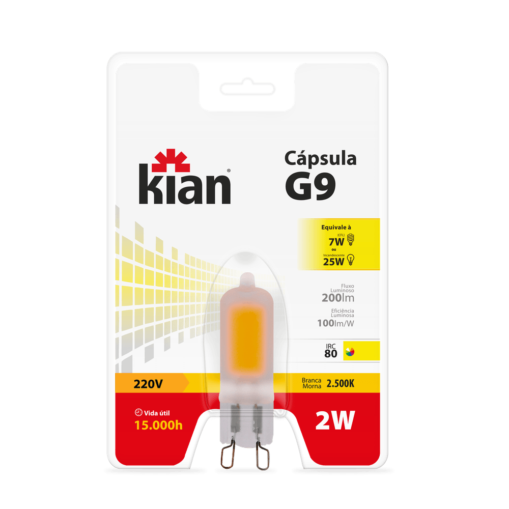Lâmpada Led Cápsula G9 2W 2.500K Branca Quente 220V Bulbo Fosco Kian