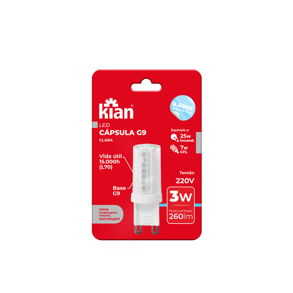 Lâmpada Led Cápsula G9 3W 6.500k Branca Fria 127v Bulbo Claro Kian