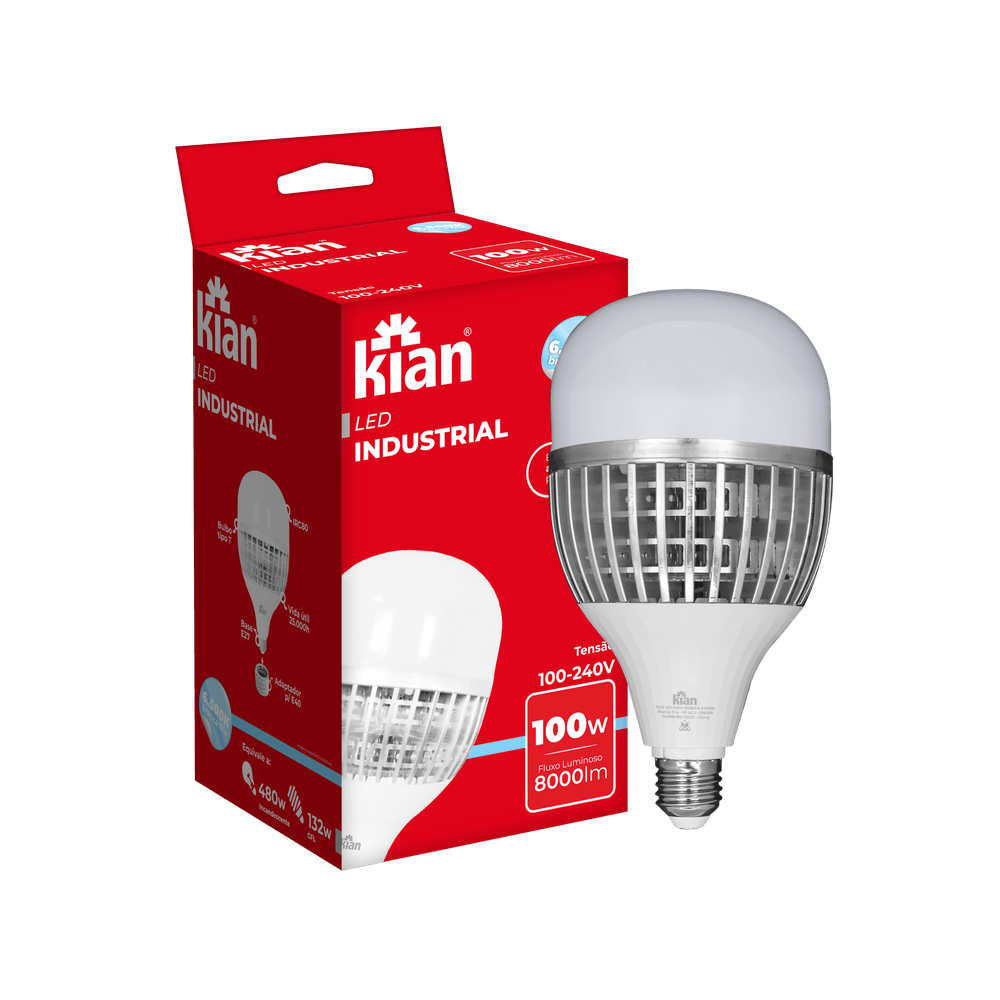 Lâmpada LED Industrial Bulbo T 120W Base E40 6.500K Branca Fria Bivolt Kian