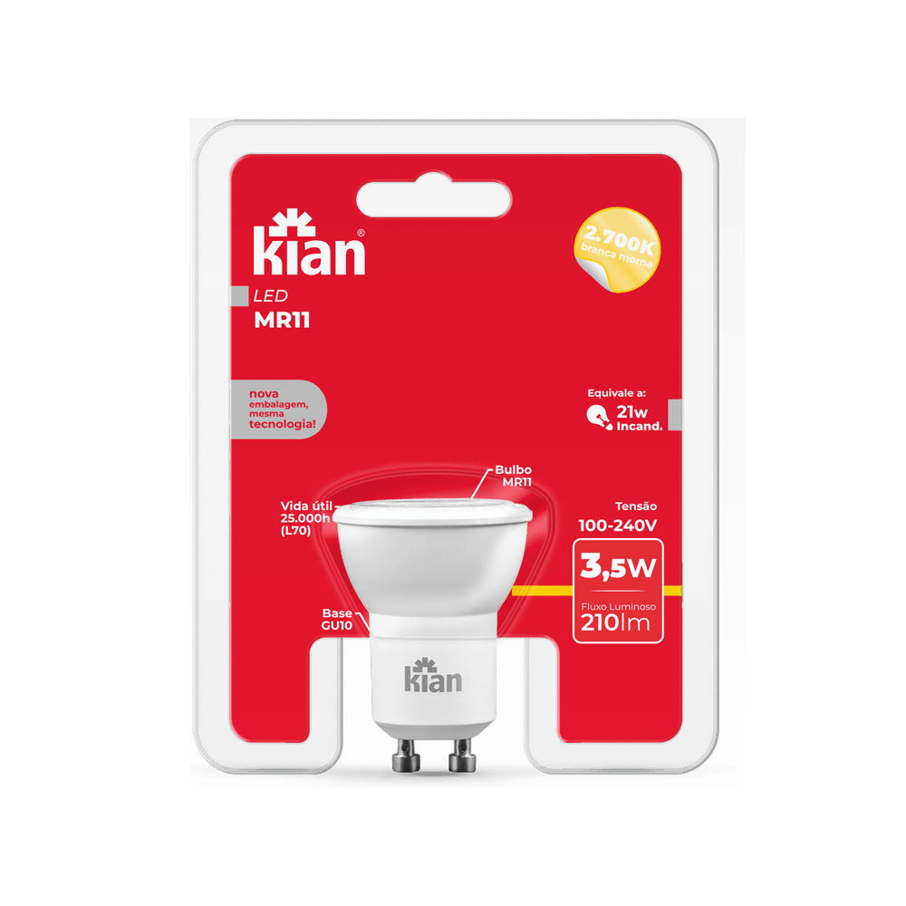 Lâmpada Led MR11 3,5W 3.000K Branca Quente Base GU10 Bivolt Kian