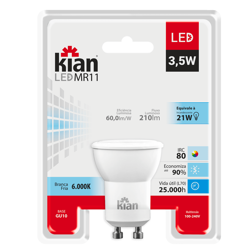 Lâmpada Led MR11 3,5W 6.500K Branca Fria Base GU10 Bivolt Kian