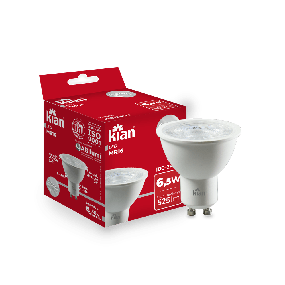 Lâmpada Led MR16 6,5W 6.500K Branca Fria Base GU10 Bivolt Kian