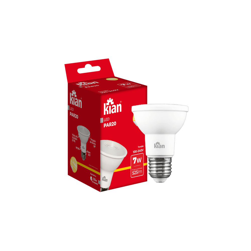 Lâmpada Led PAR20 7W 2.700K Branca Quente Bivolt Kian