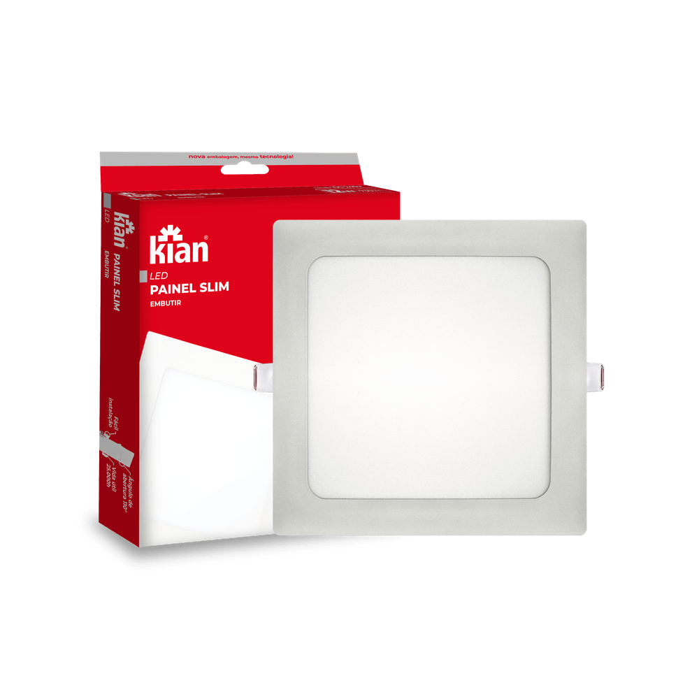 Luminária Led Painel Slim Quadrada Embutir 12W 6.000K Branca Fria Bivolt Kian