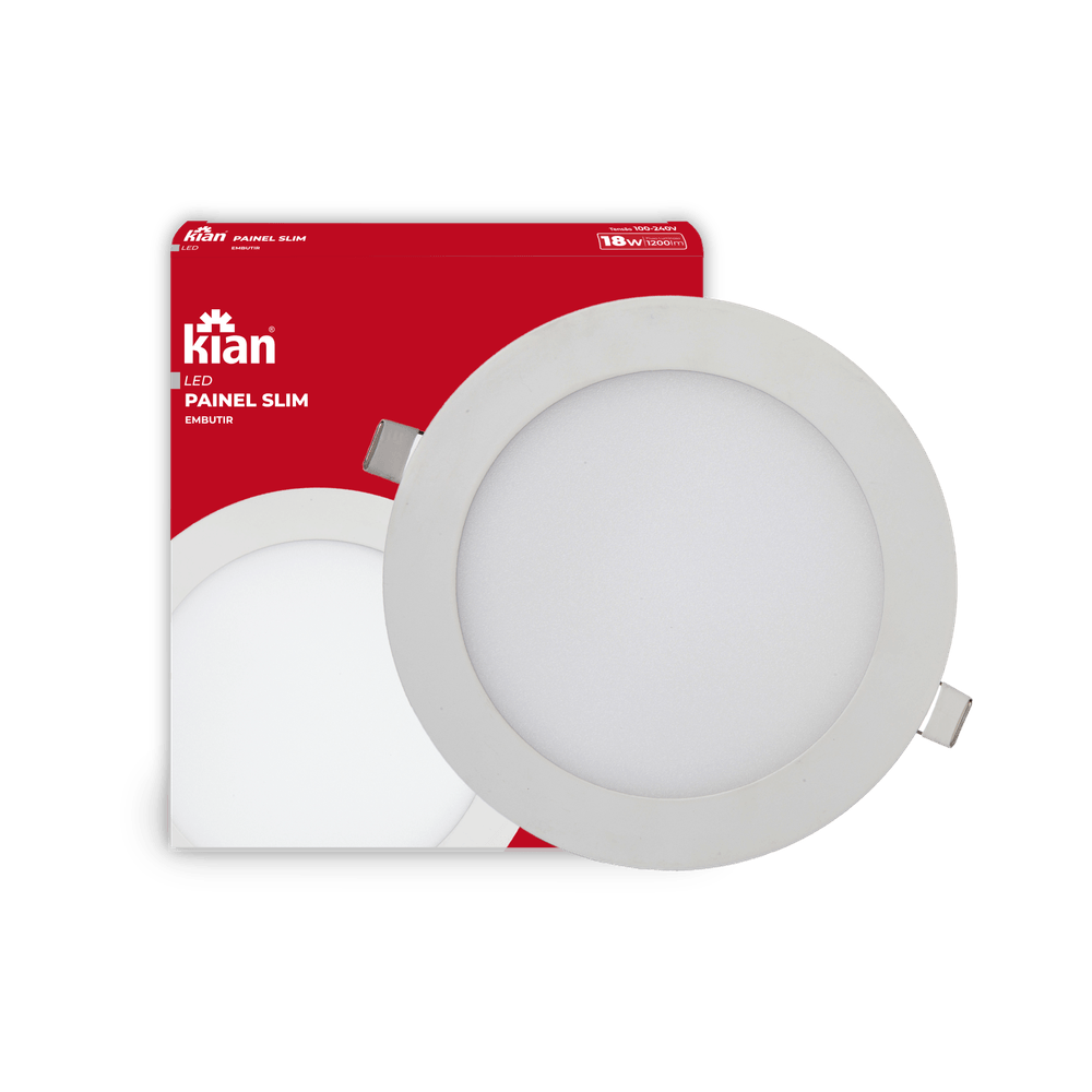 Luminária Led Painel Slim Redonda Embutir 18W 3.000K Branca Quente Bivolt Kian