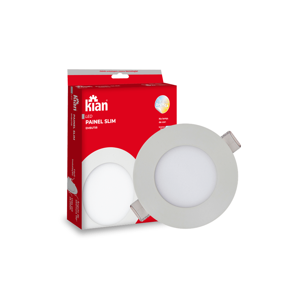 Luminária Led Painel Slim Redonda Embutir 6W 6.000K Branca Fria Bivolt Kian