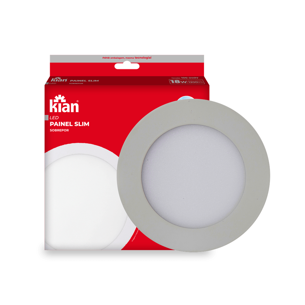 Luminária Led Painel Slim Redonda Sobrepor 18W 3.000K Branca Quente Bivolt Kian