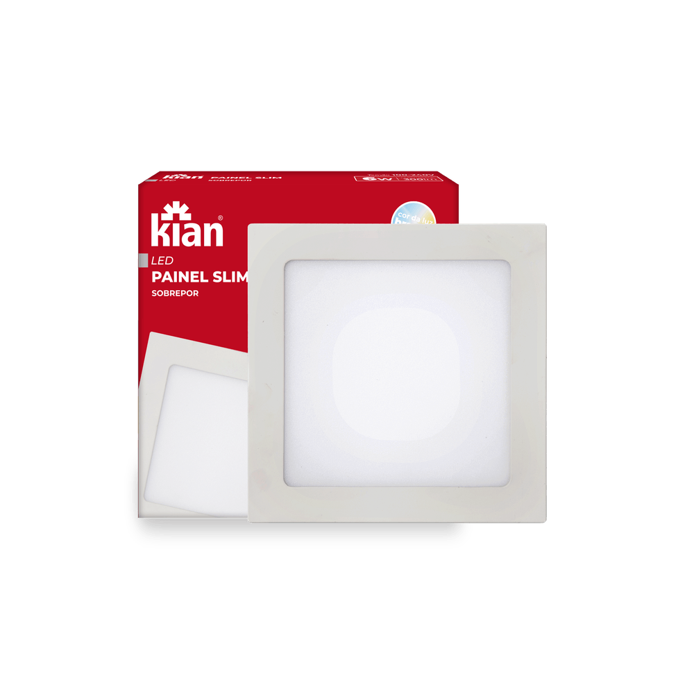 Luminária Led Painel Slim Quadrada Sobrepor 18W 6.000K Branca Fria Bivolt Kian