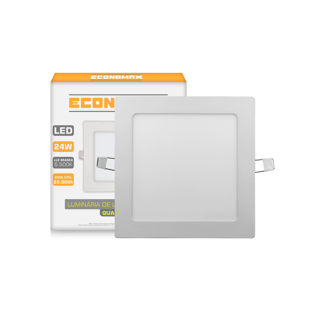 Luminária Led Slim Quadrada Sobrepor 24W 6.500K Branca Fria Bivolt Economax