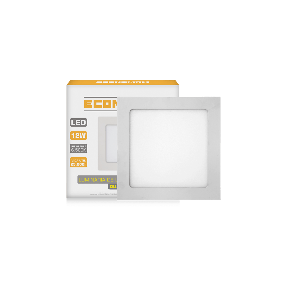 Luminária Led Slim Quadrada Sobrepor 24W 6.500K Branca Fria Bivolt Economax