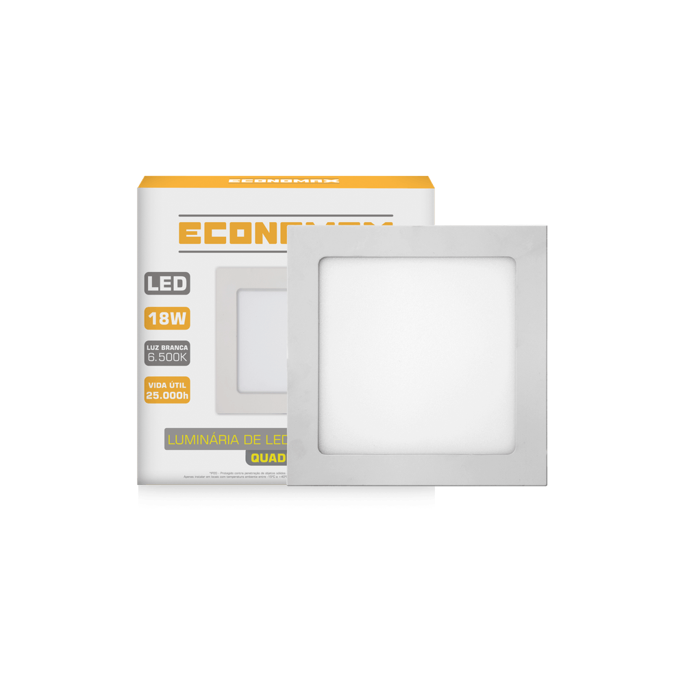 Luminária Led Slim Quadrada Sobrepor 18W 6.500K Branca Fria Bivolt Economax
