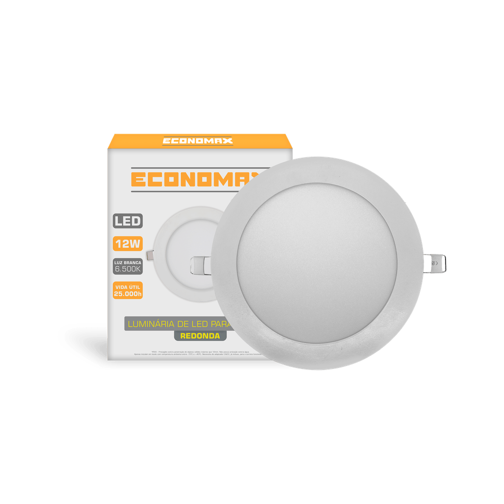 Luminária Led Slim Redonda Embutir 12W 6.500K Branca Fria Bivolt Economax