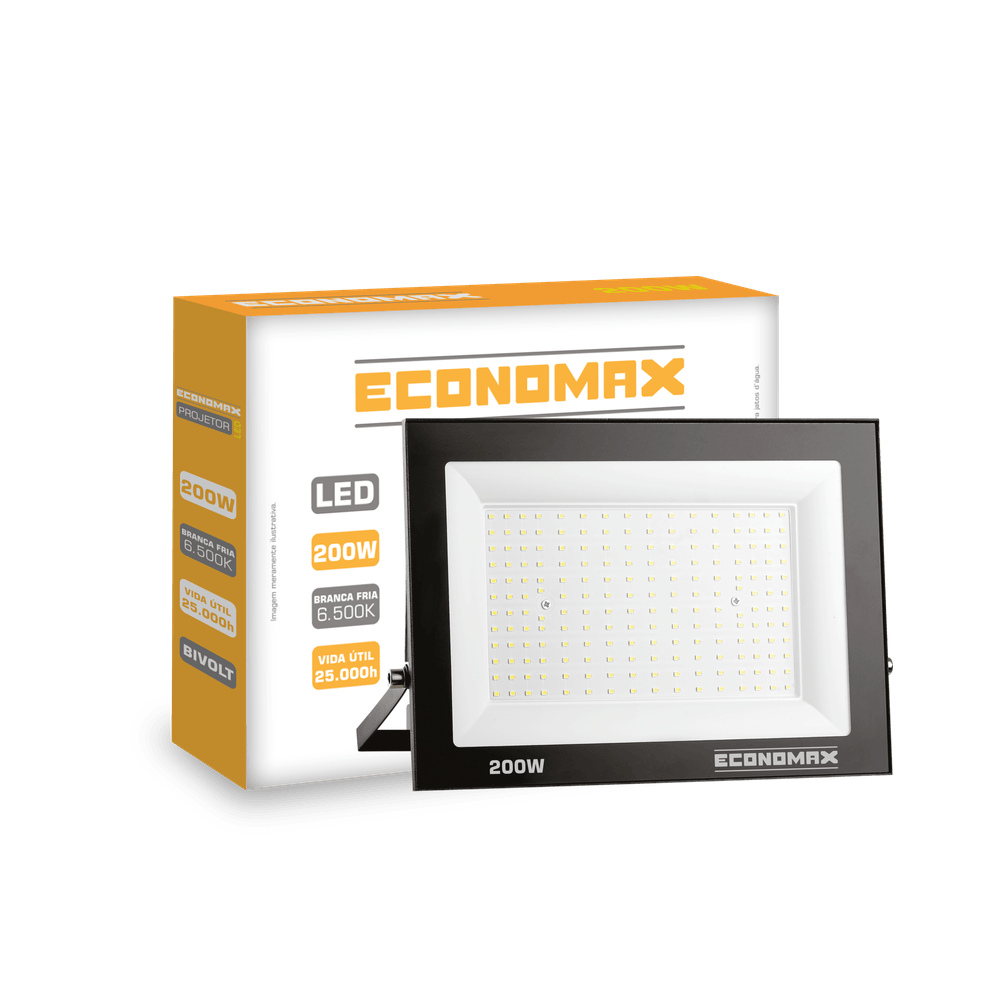 Projetor Led 200W 6.500K Branca Fria Bivolt Economax