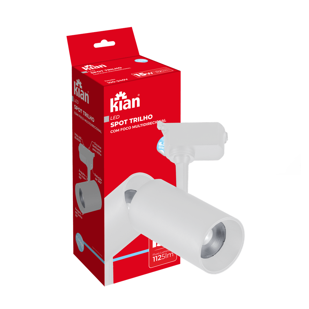 Spot Trilho Led Branca 15W 6,5K Branca Fria Bivolt Kian