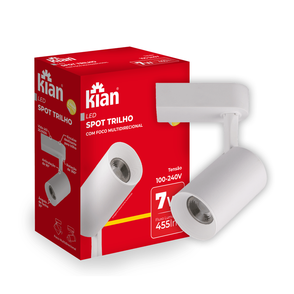 Spot Trilho Led Branco 7W 3.000K Branca Quente Bivolt Kian