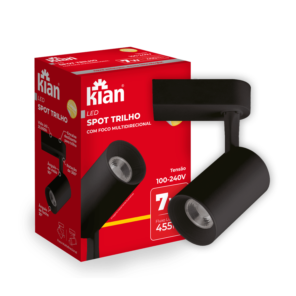 Spot Trilho Led Fit Preto 7W 3.000K Branca Quente Bivolt Kian